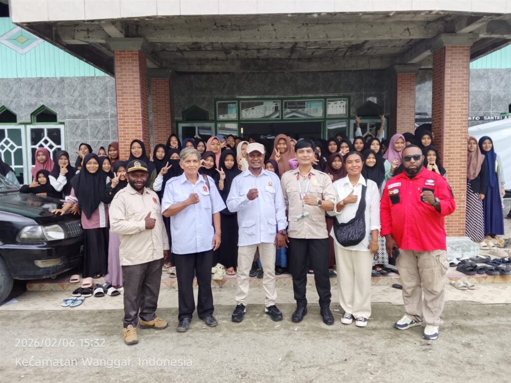 Nabire, Papua Tengah – enagoNews – Dalam rangka menyongsong Hari Ulang Tahun (HUT) ke-18 Partai Gerakan Indonesia Raya (Gerindra), Dewan Pimpinan Daerah (DPD) Partai Gerindra Provinsi Papua Tengah bersama Dewan Pimpinan Cabang (DPC) Partai Gerindra Kabupaten Nabire menggelar kegiatan silaturahmi sekaligus penyaluran bantuan sembako kepada Pesantren APIK di Kaladiri 1, Distrik Nabire Barat, Jumat (6/2/2026). Kegiatan ini mengusung tema “Kompak, Bergerak, Berdampak bagi Masyarakat”, sebagai wujud nyata kepedulian Partai Gerindra terhadap masyarakat, khususnya anak-anak dan dunia pendidikan di wilayah Papua Tengah.