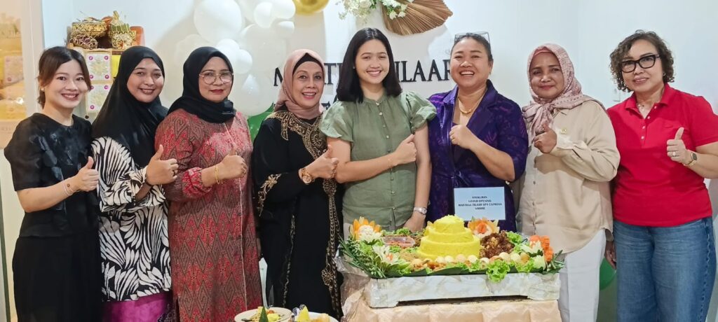 Sementara pemotongan tumpeng dilakukan oleh Perwakilan PT.Cantika Puspapesona Ibu Leony dan Owner Outlet Baru Martha Tilaar Nabire Ibu Tanti Srimulyani.