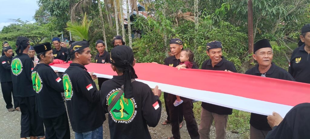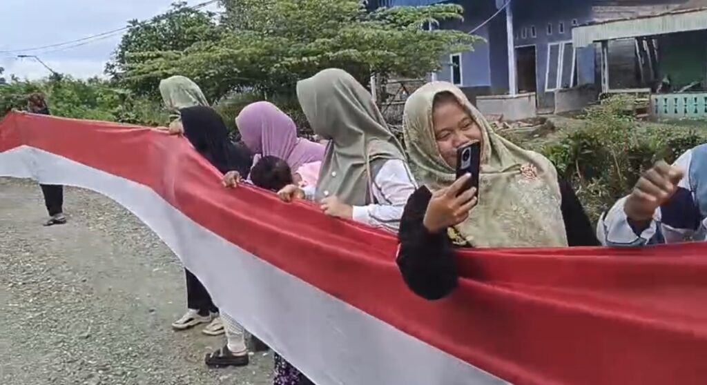 Nabire, Papua Tengah – enagoNews – Bendera Merah Putih sepanjang 80 meter dibentangkan di Kampung Biha (Lagari 1) Distrik Makimi Kabupaten Nabire Provinsi Papua Tengah, Minggu (2/10/2025). Sang Merah Putih sepanjang itu berhasil dibentangkan disepanjang Jalan Kampung Biha hasil kolaborasi antara media Siliwangi News, EnagoNews, dan Pasundan Ngahiji.