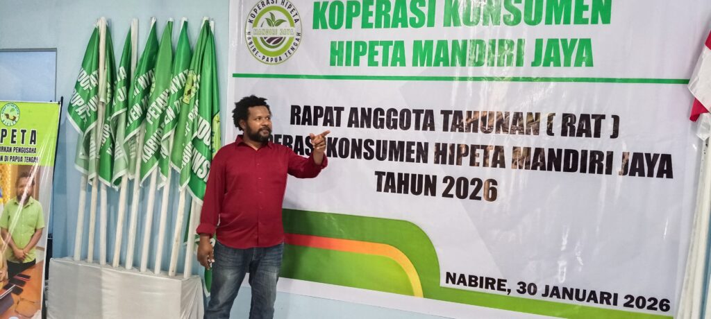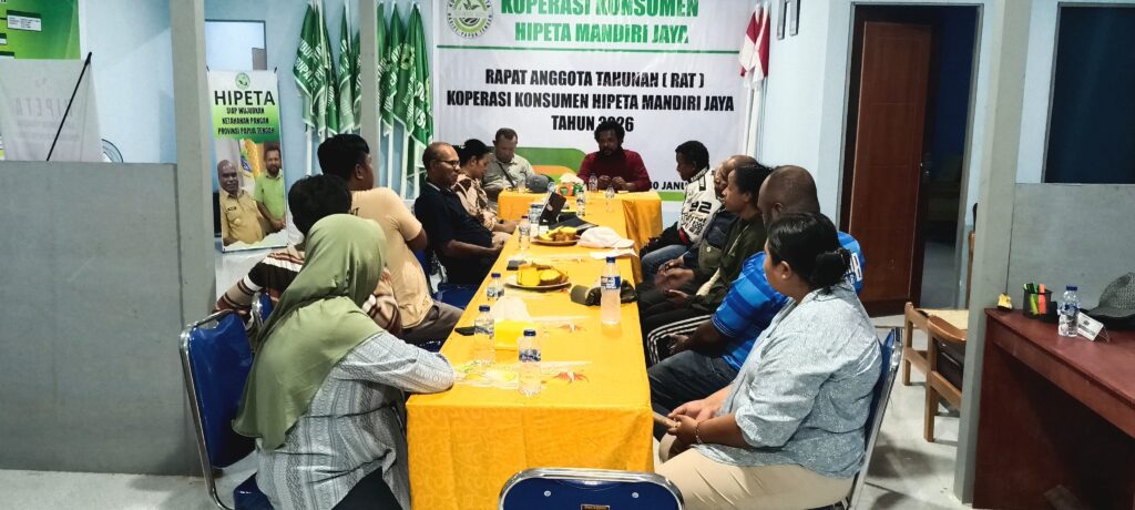 RAT tersebut dihadiri jajaran Badan Pengurus Pusat HIPETA, pengurus inti Koperasi Konsumen Mandiri Jaya, serta Kepala Dinas Koperasi dan UMKM Kabupaten Nabire, Jihon Duwiri, yang sekaligus membuka kegiatan secara resmi.