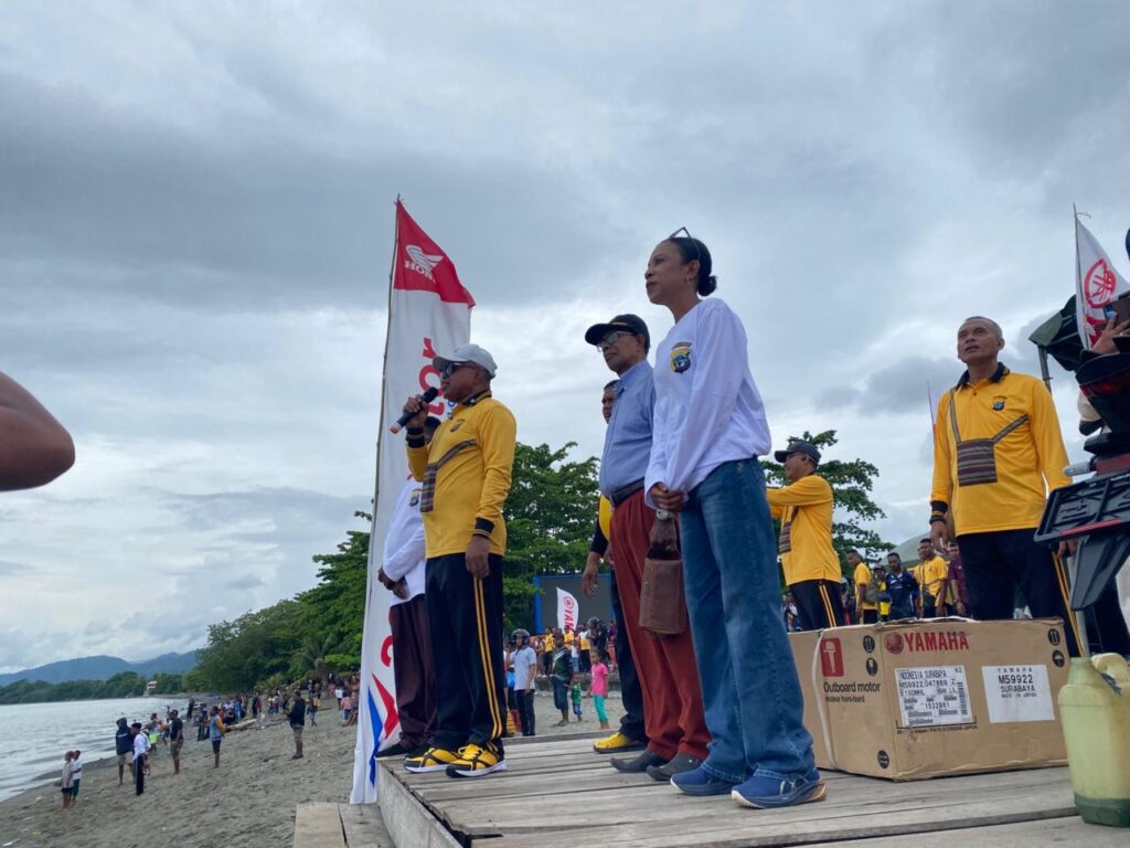 Nabire, Papua Tengah – enagoNews – erayaan Hari Ulang Tahun ke-2 Polda Papua Tengah diisi dengan berbagai kegiatan menarik, salah satunya final lomba balap perahu motor tempel Yamaha 15 HP yang digelar di Pantai Maf, Nabire, Jumat (24/04/2026). Suasana pesisir dipenuhi antusiasme masyarakat yang menyaksikan langsung jalannya perlombaan.